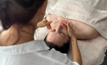 Buccal (intraoral) massage works both inside and outside the mouth to release deep facial tension, sculpt the contours, and naturally lift and tone the skin. By targeting the muscles and ligaments around the jaw and cheeks, it boosts circulation, reduces puffiness, eases jaw tightness, and enhances overall radiance. This deeply therapeutic technique delivers a noticeably more defined, relaxed, and rejuvenated appearance.
